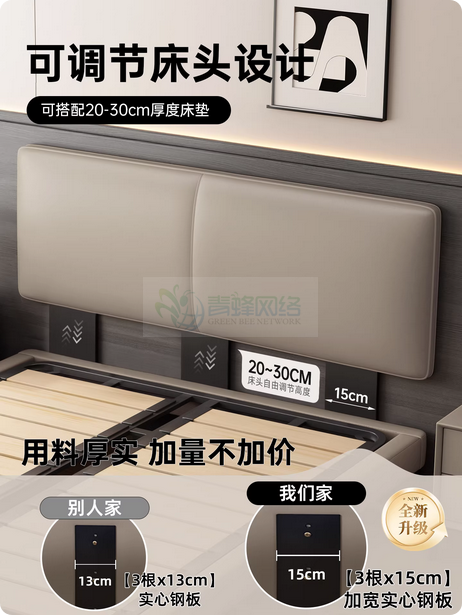 头层牛皮主次卧小户型真皮床现代极简约储物双人软包超薄床头皮床