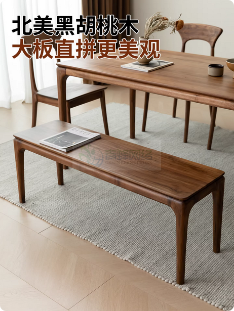 北美黑胡桃木实木长凳餐椅凳子长板凳换鞋凳长条凳条凳实木床尾凳