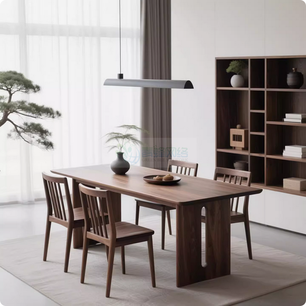 北美黑胡桃木饭桌新中式简约全实木餐桌现代宋式美学橡木茶桌茶台