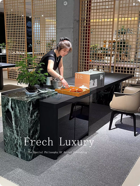 现代简约轻奢大理石茶台2026新款高级感意式极简一体式实木泡...