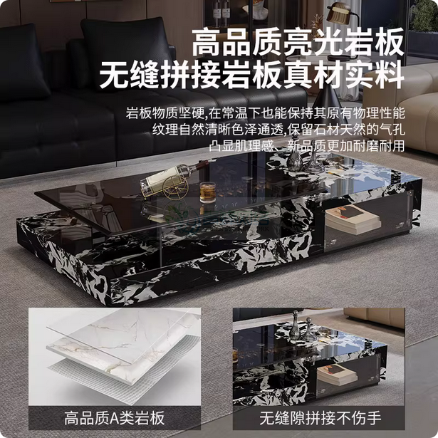 2026新款岩板茶几现代简约轻奢极简长方形大气客厅家用客厅高...