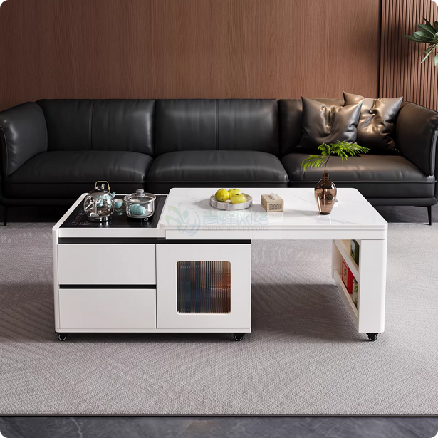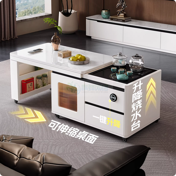 多功能电动茶几【雪山白岩板】近期热销
